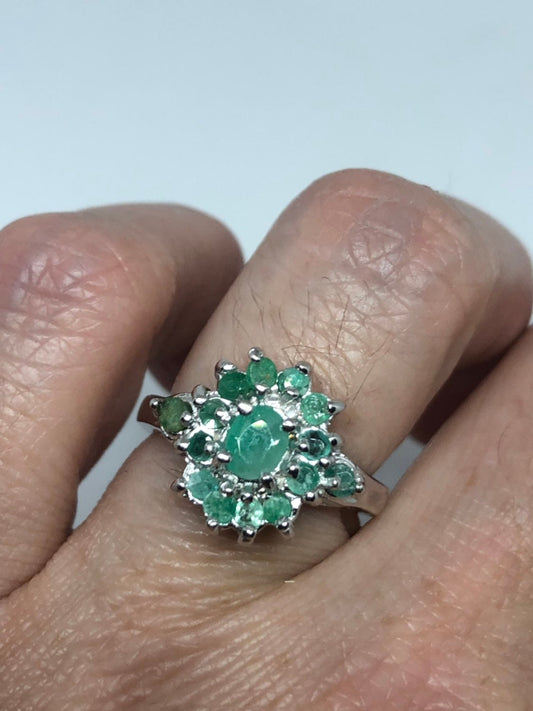 Vintage Handmade Genuine Green Emerald Setting 925 Sterling Silver Gothic Ring