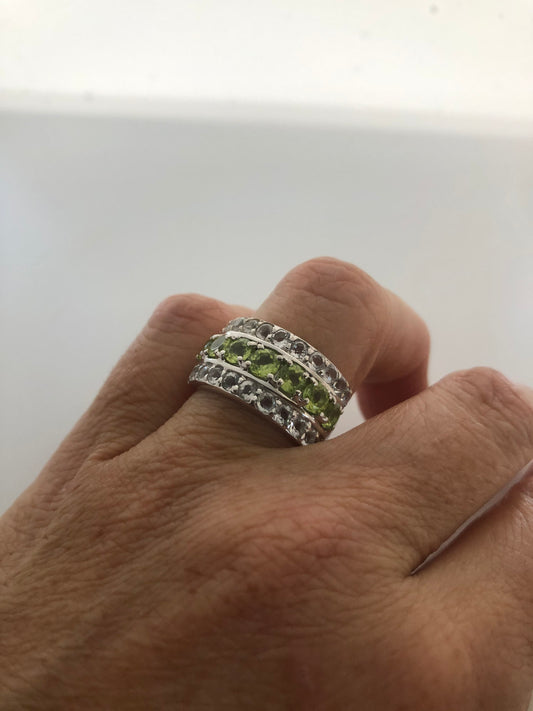 Vintage Handmade Genuine Green Peridot 925 Sterling Silver Ring Size 7