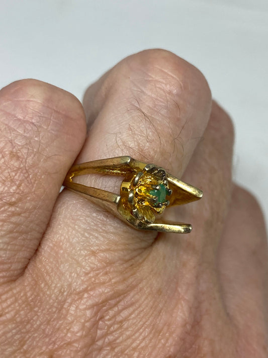 Vintage Handmade Genuine Green Emerald Setting Golden 925 Sterling Silver Gothic Ring