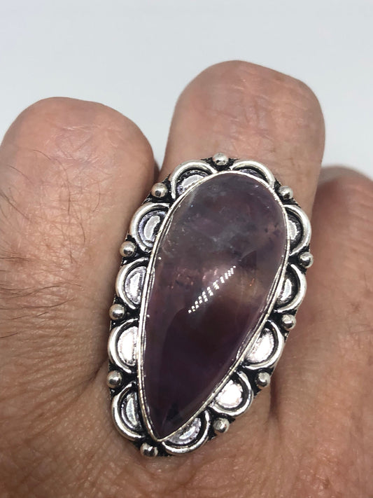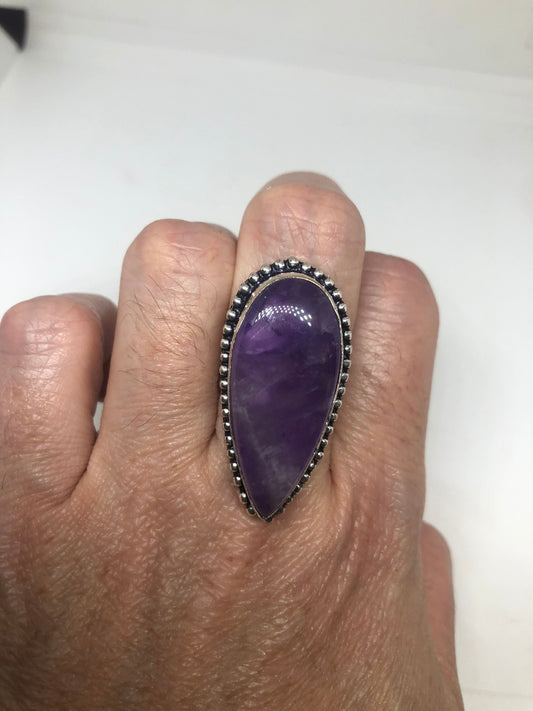 Vintage Purple Amethyst Silver Cocktail Statement Ring Size 8.5