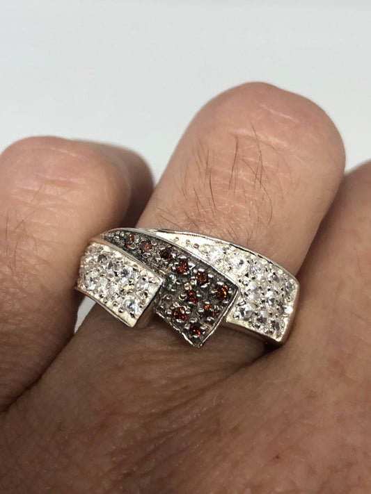 Vintage Red Bohemian Garnet White Sapphire 925 Sterling Silver Cocktail Statement