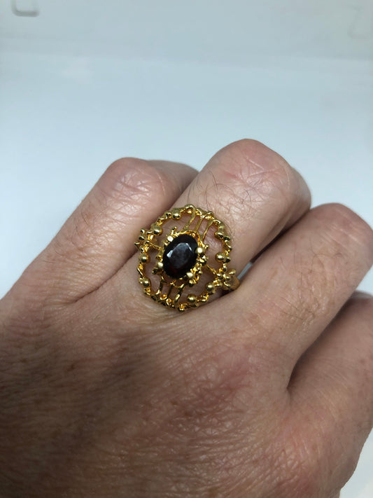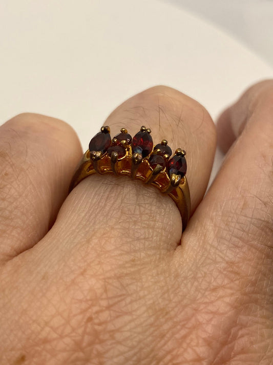 Vintage Red Bohemian Garnet Ring Golden 925 Sterling Silver Size 4.5