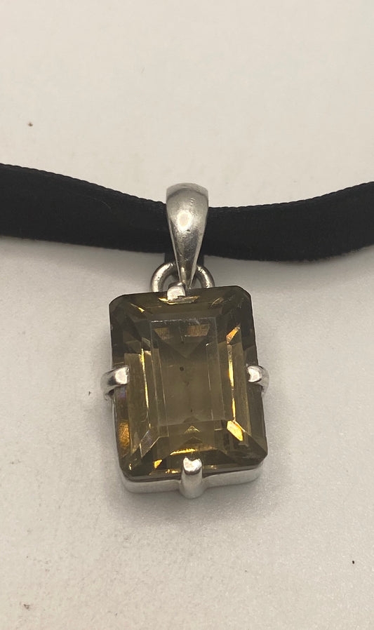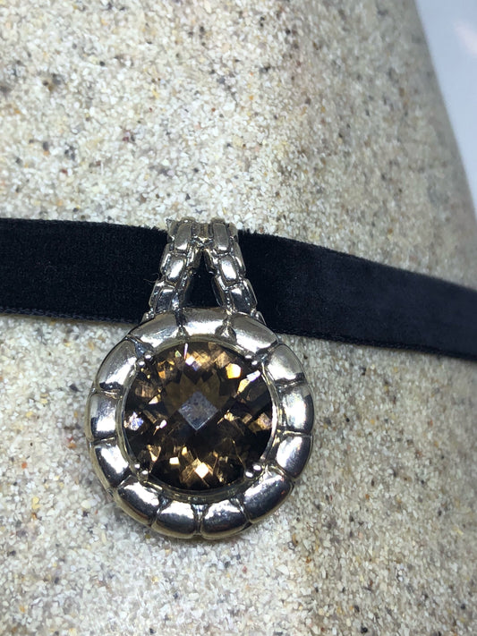 Vintage Smoky Quartz Pendant 925 Sterling Silver Choker Necklace