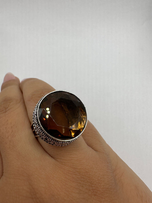 Vintage Smoky Topaz 925 Sterling Silver Ring Size 7