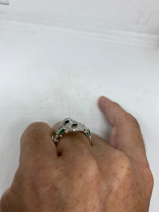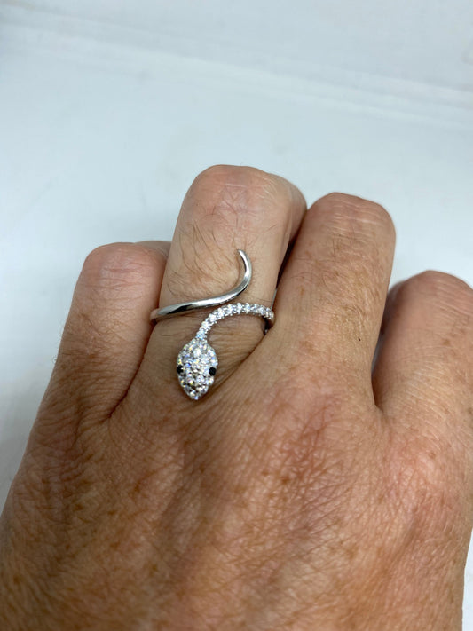 Vintage Snake Ring 925 Sterling Silver Crystal Size 6
