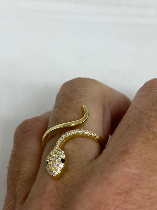 Vintage Snake Ring Golden Sterling Silver Crystal Adjustable