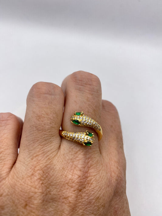 Vintage Snake Ring Gold Filled Crystal Cocktail Ring