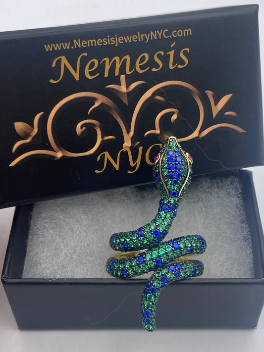Vintage Snake Ring Sterling Silver Blue Green Crystal