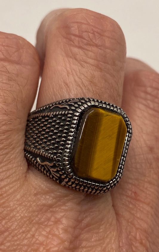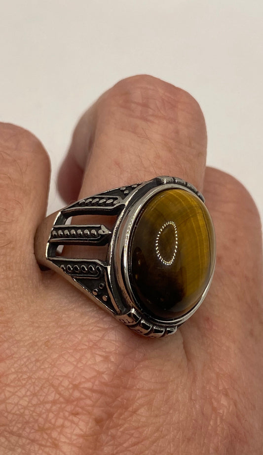 Vintage Stainless Steel Tigers Eye Ring Size 12