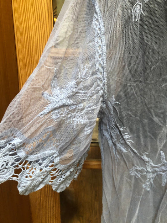 Vintage Style Blue ivory Embroidered kimono Poncho
