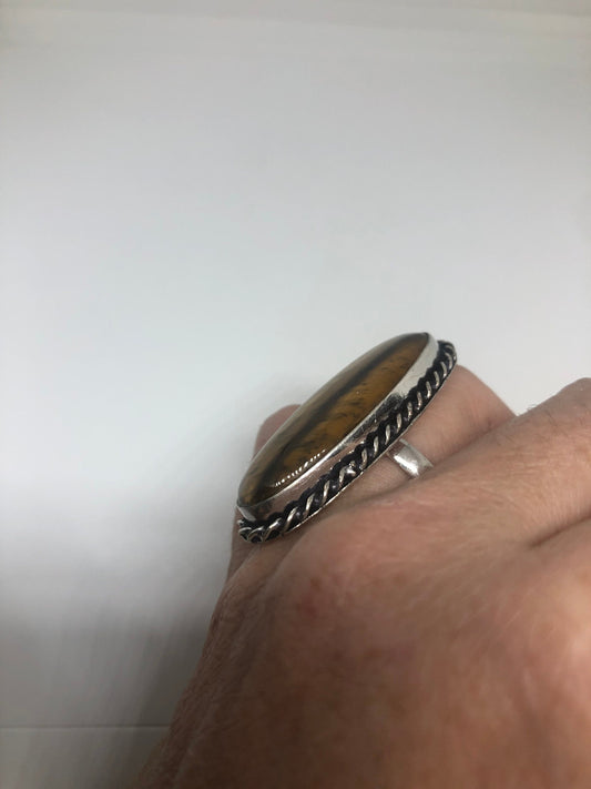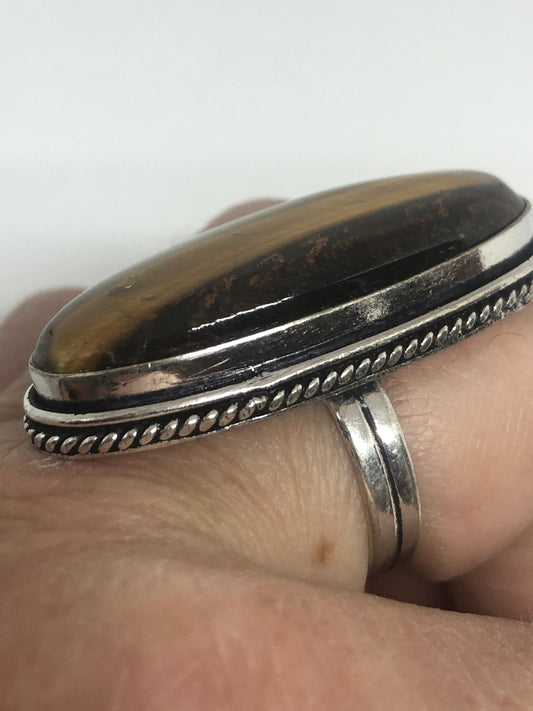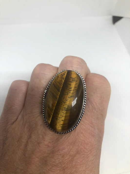 Vintage Tigers Eye Silver Cocktail Ring Size 7.75