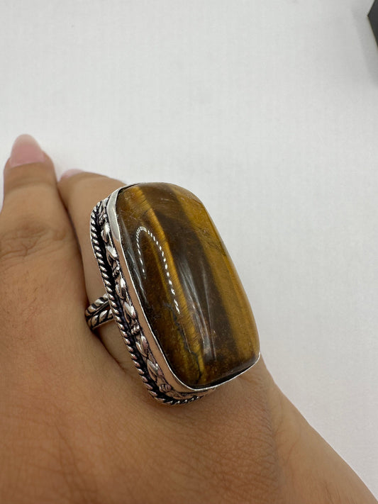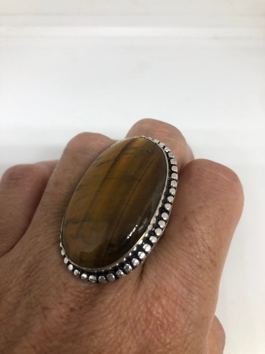 Vintage Tigers Eye Silver Cocktail Ring Size 9.25