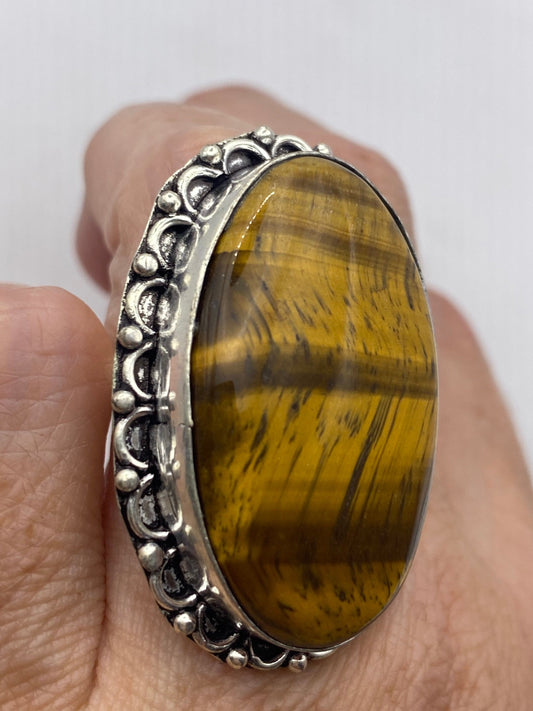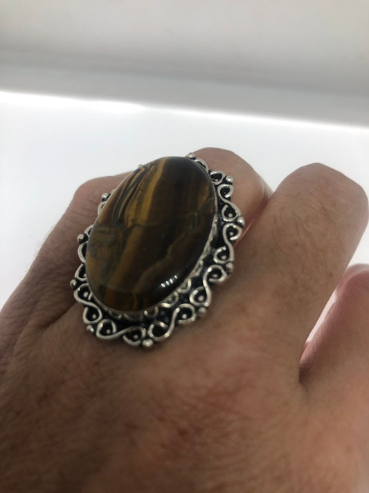 Vintage Tigers Eye Silver Cocktail Ring Size 9.25