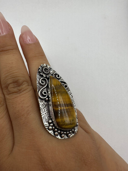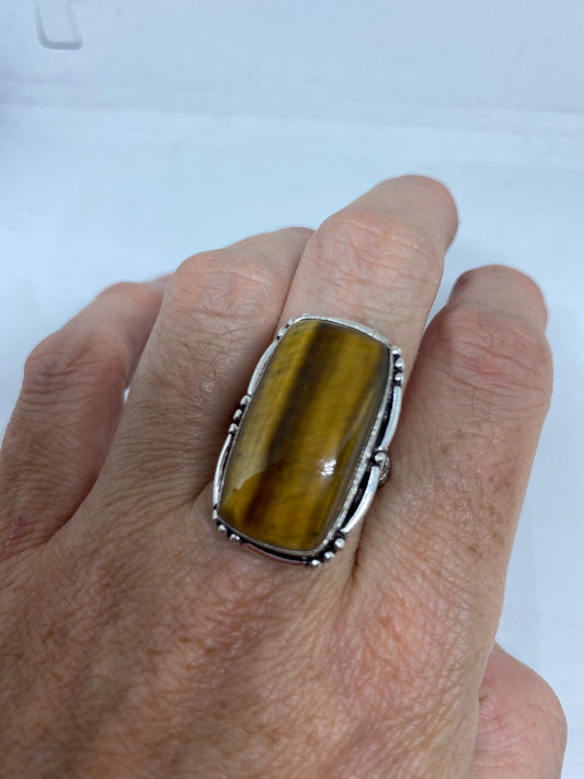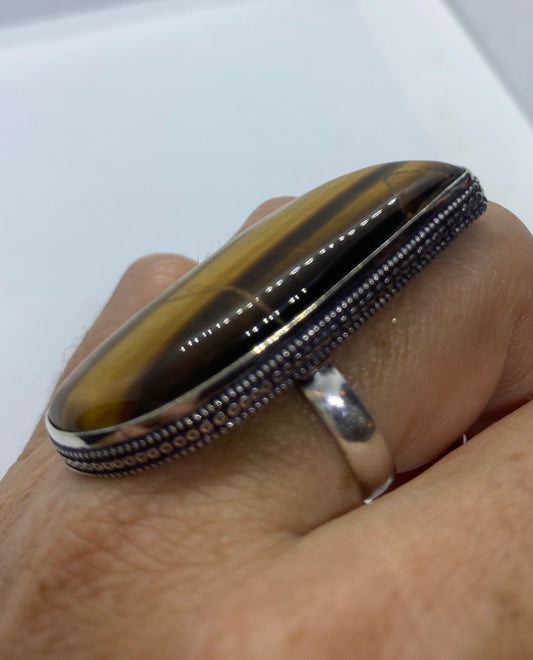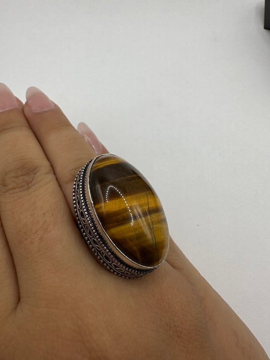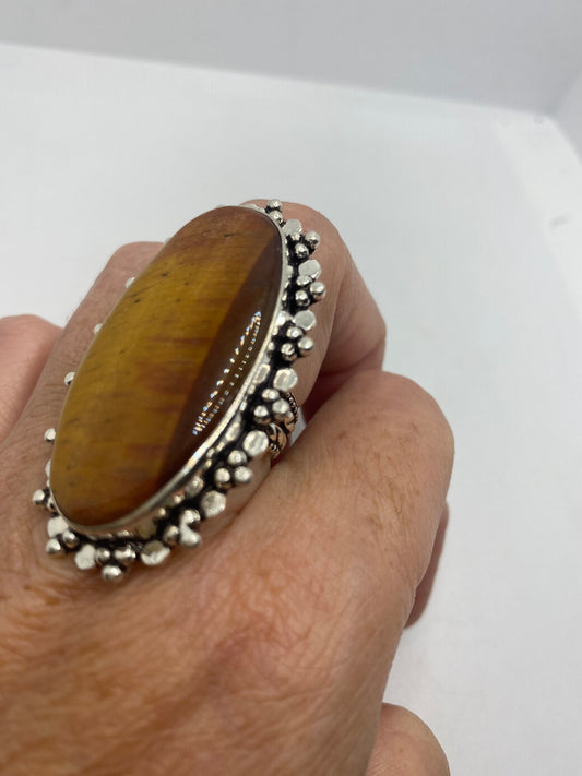 Vintage Tigers Eye Silver Cocktail Ring Size 7.75