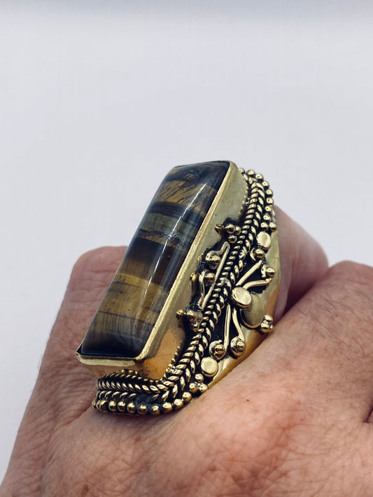 Vintage Tigers Eye Stone Gold Bronze Cocktail Ring