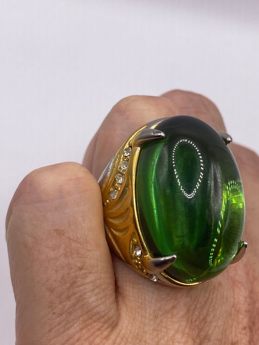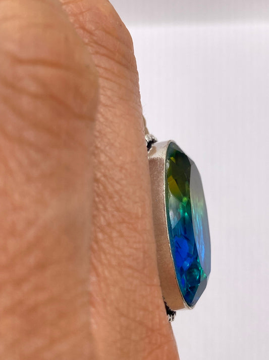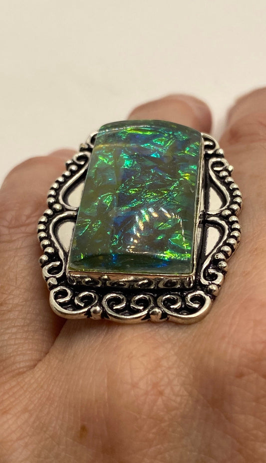 Vintage Aqua Green Pink Opal Art Glass Cocktail Ring