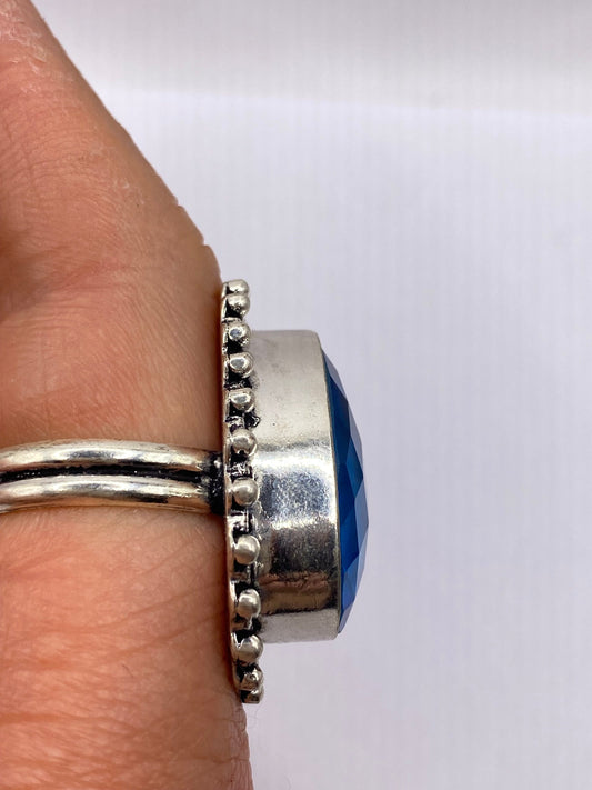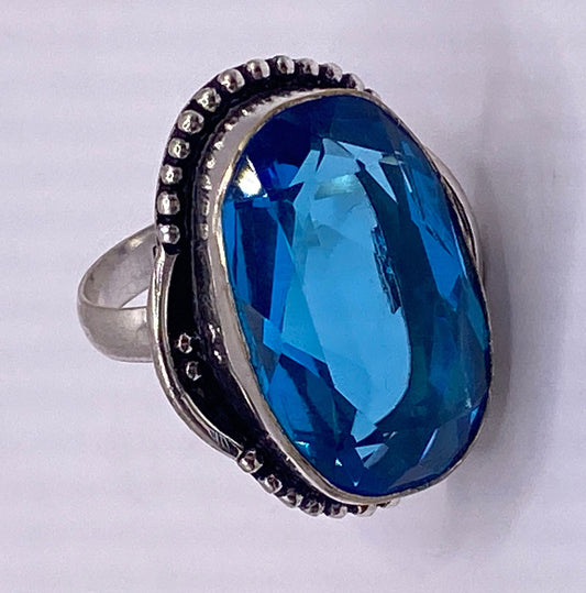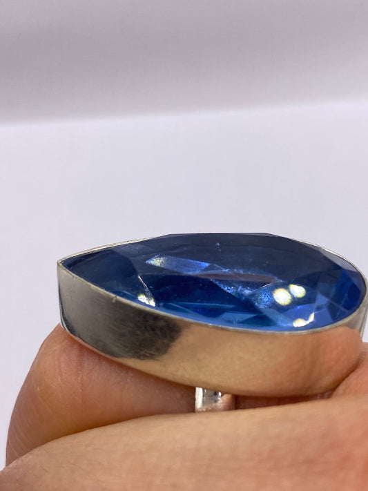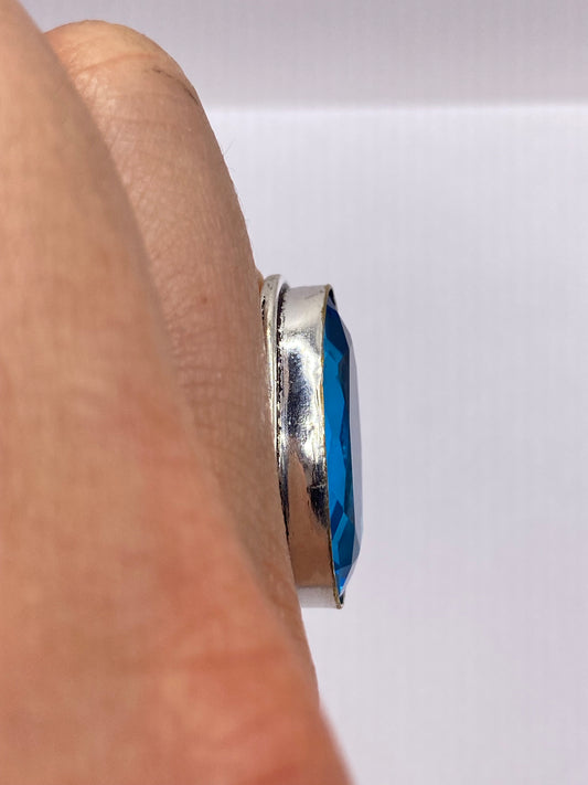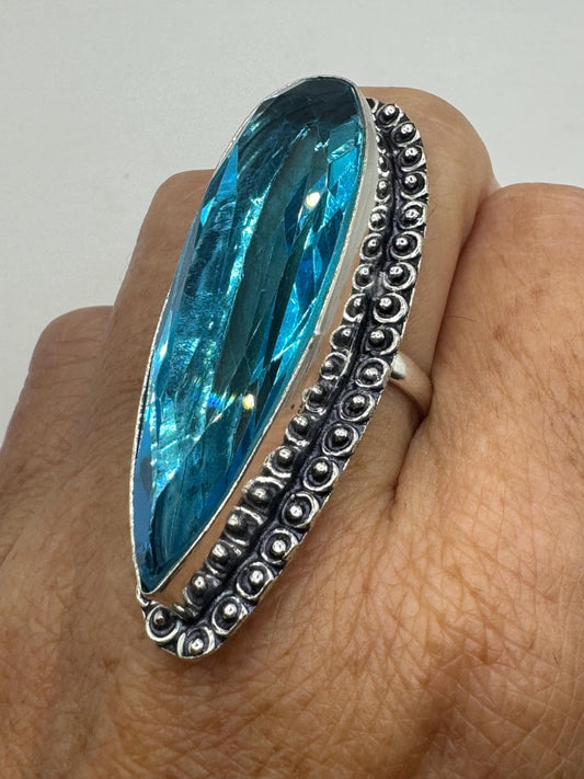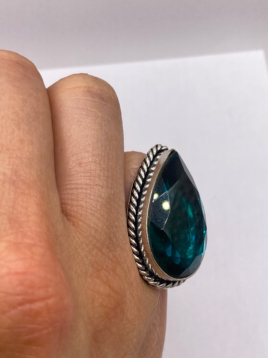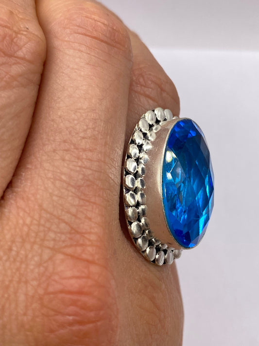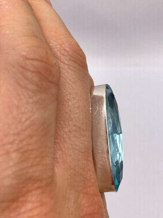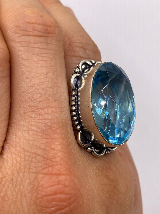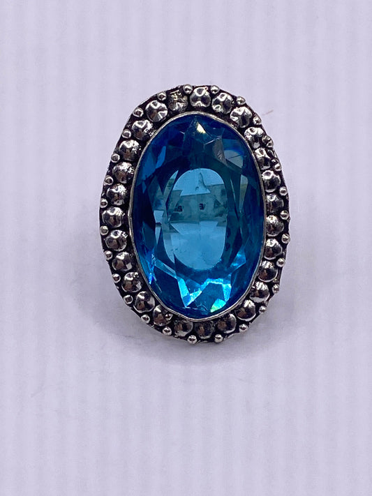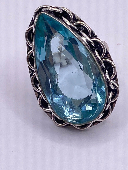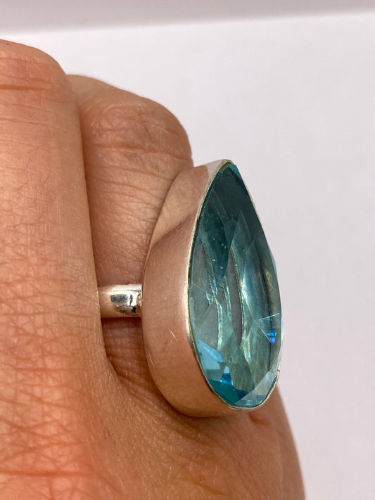 Vintage Aqua Blue Volcanic Art Glass Ring