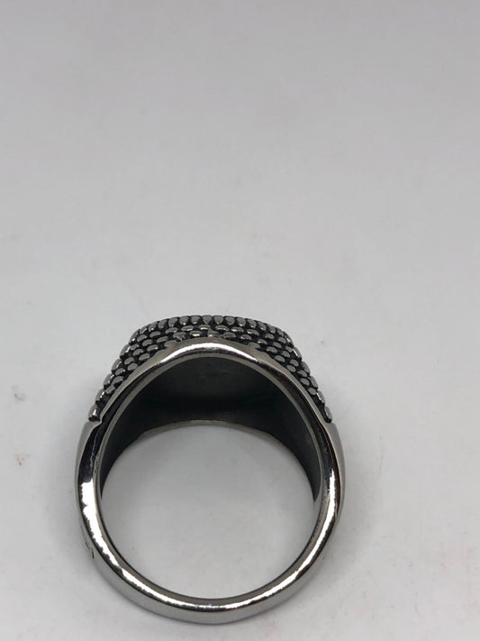 Vintage Gothic Black Onyx Stainless Steel Mens Ring