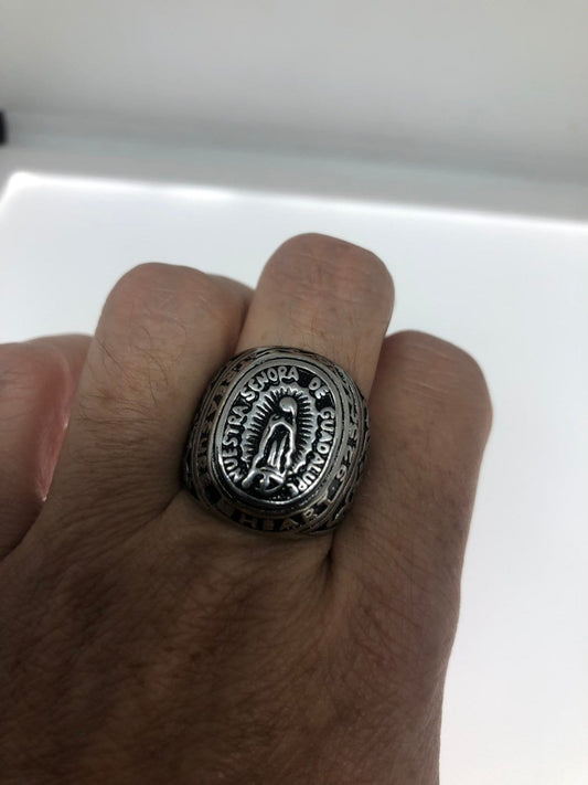 Vintage Stainless Steel Our Lady of Guadeloupe Mens Ring
