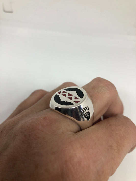 Vintage Native American Style Southwestern Stone Inlay Mens Ring