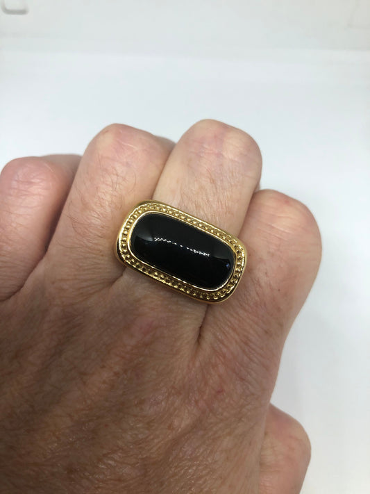 Vintage Black Onyx Golden Stainless Steel Mens Ring