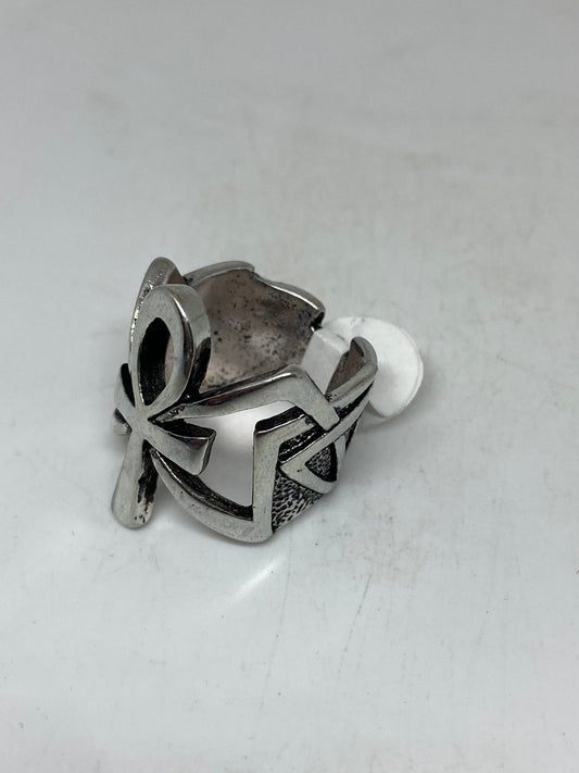 Vintage Silver White Bronze Gothic Egyptian Ankh Men Ring