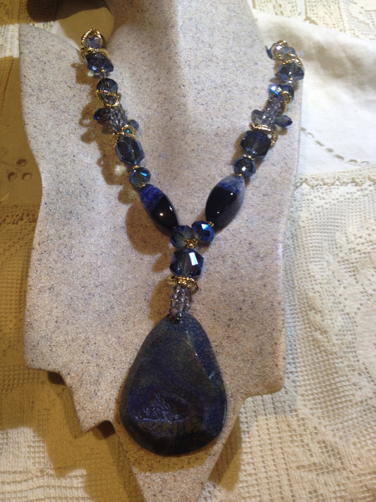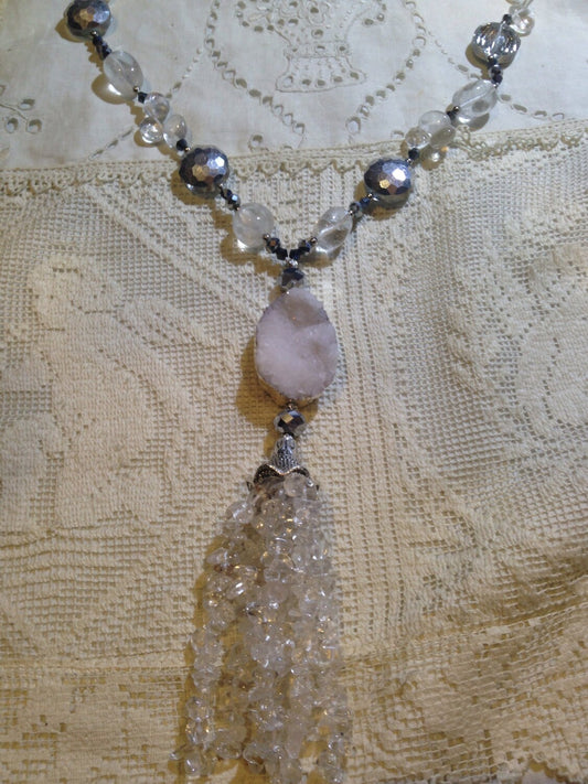 Handmade Blue Quartz druze and Crystal Y Necklace