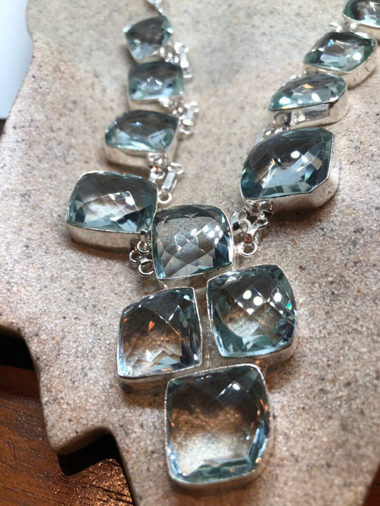 Aqua Blue Handmade Gothic Styled Silver Finished Genuine Facetted Antique Glass Turquoise Choker Necklace
