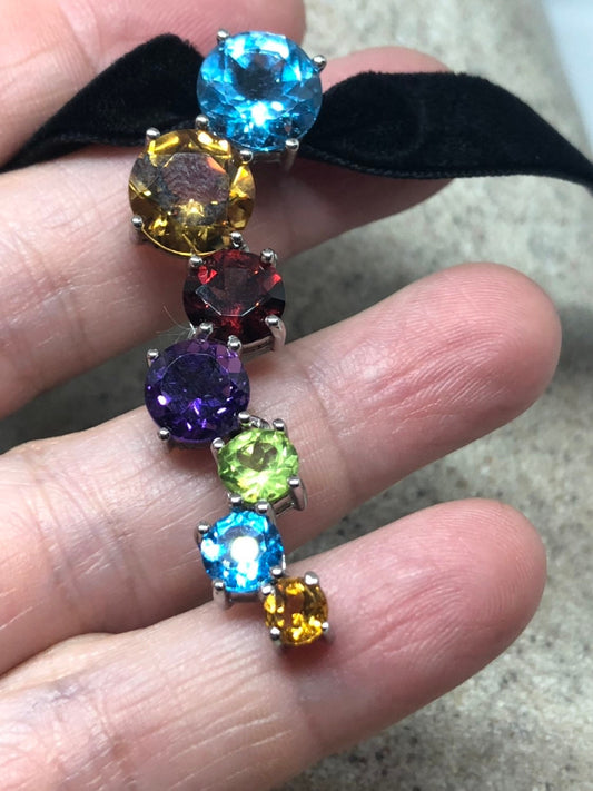 Vintage Handmade 925 Sterling Silver Genuine Garnet, Peridot and Citrine Antique Pendant Necklace