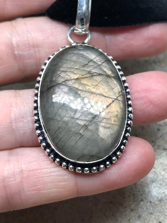 Vintage Silver Genuine Labradorite Gemstone Necklace.