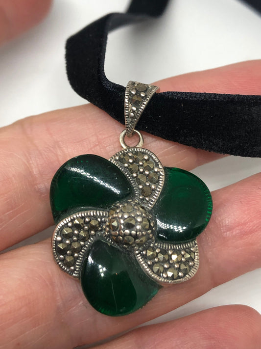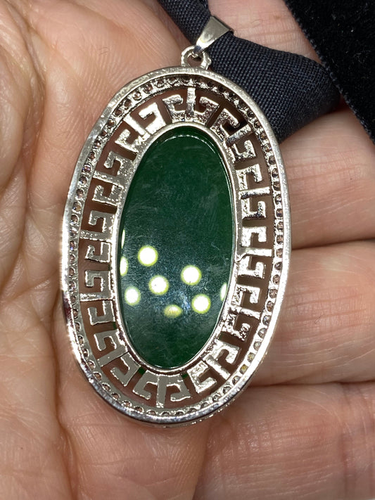 Vintage Green Jade Choker Silver Finish Necklace Pendant
