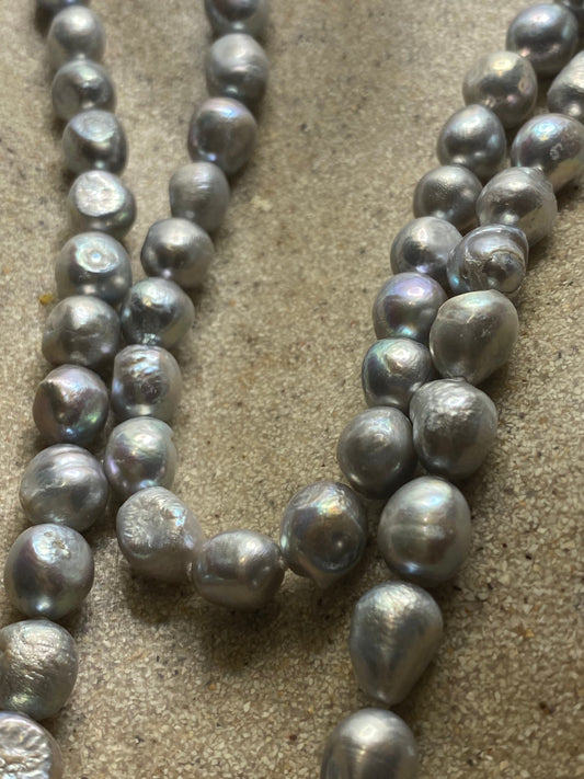 Vintage Hand Knotted Gray Pearl 48 in Necklace