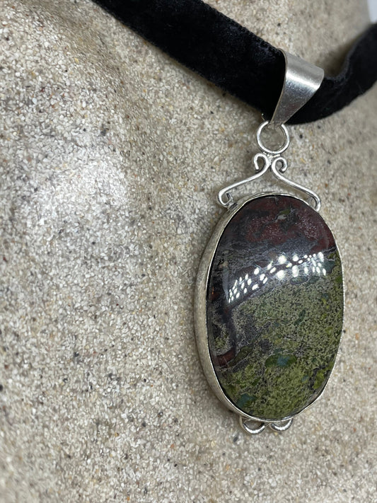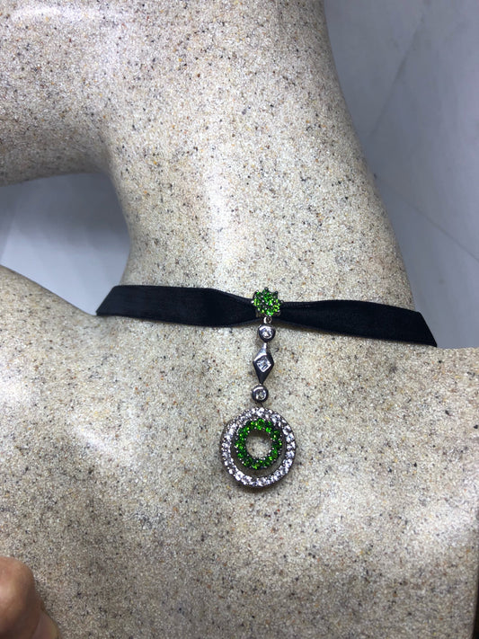 Vintage Green Choker Deco Chrome Diopside 925 Sterling Silver Pendant Necklace