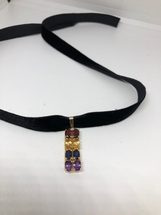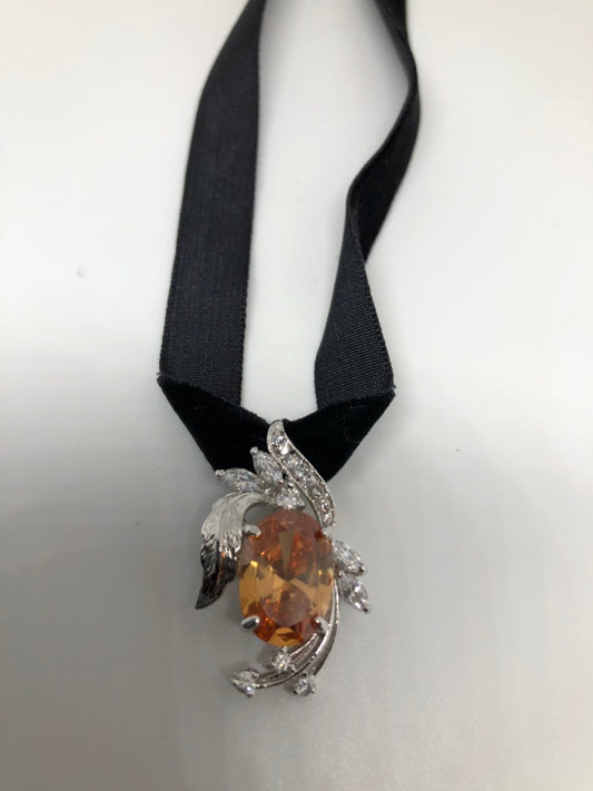 Vintage Golden CZ Citrine Choker Sterling Silver Pendant Necklace
