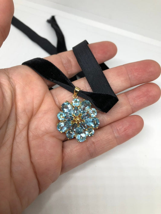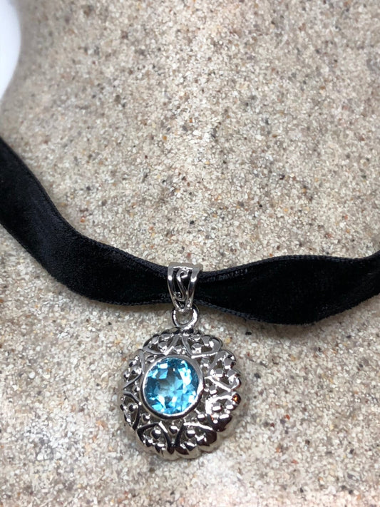Vintage Genuine Deep Blue Topaz 925 Sterling Silver Necklace Pendant