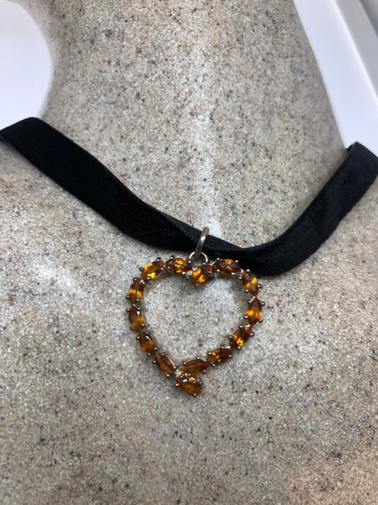 Vintage Handmade 925 Sterling Silver Genuine Citrine Antique Heart Pendant Necklace