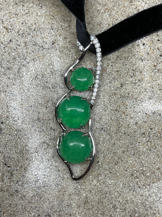 Vintage Green Jade Pea pod Choker Silver Finish Necklace Pendant
