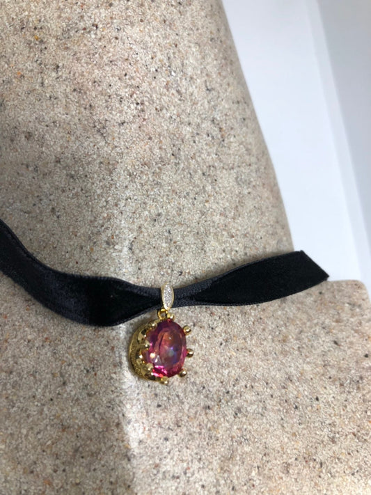 Vintage Cabochon Purple Charlite Choker Necklace