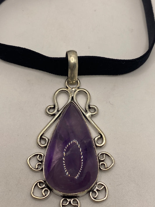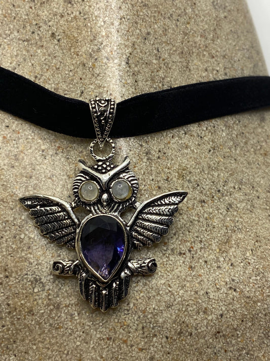 Vintage Purple Amethyst Owl Choker Necklace