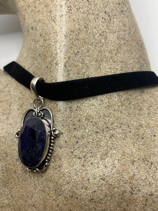 Vintage Cabochon Blue Raw Sapphire Choker Necklace