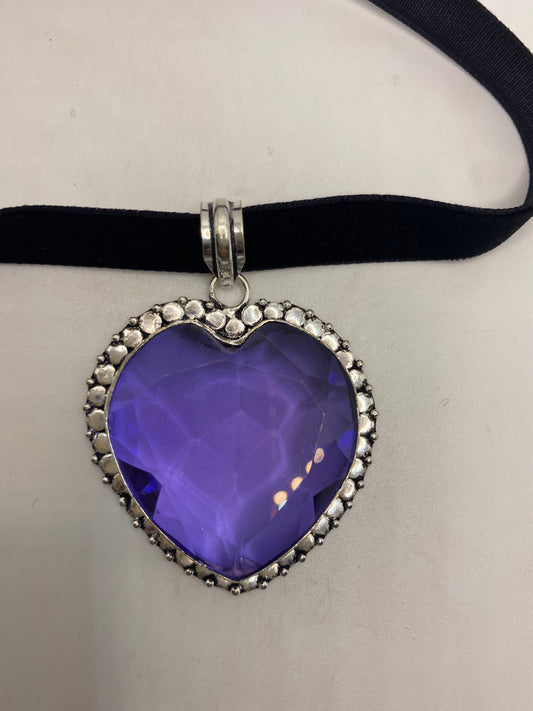 Vintage Heart Antique Purple Glass Choker Necklace