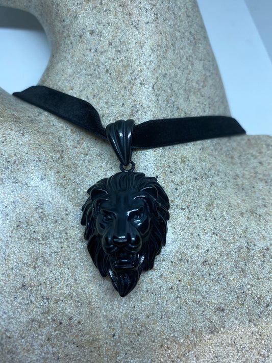 Vintage Black Stainless Steel Gothic Celtic Lion Leo Pendant Necklace
