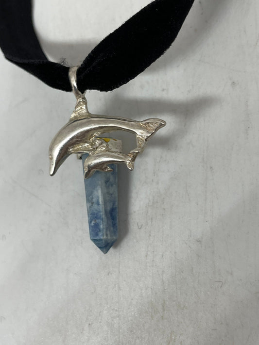 Vintage Dolphin Choker Blue Sodalite 925 Sterling Silver Necklace