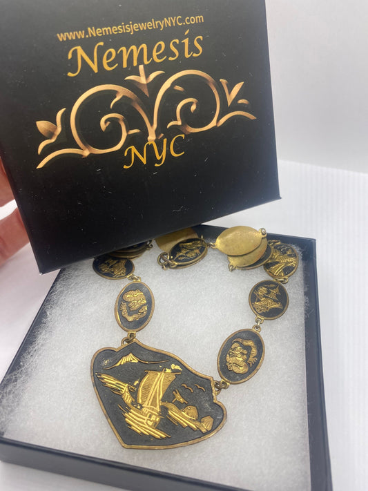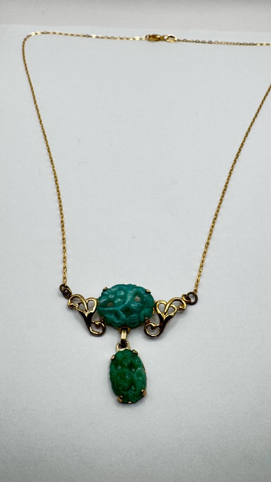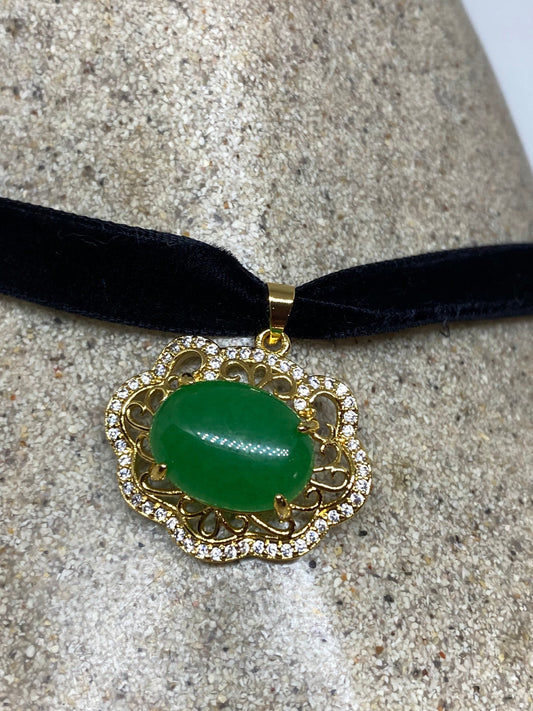Vintage Green Jade Choker Gold Finish Necklace Pendant