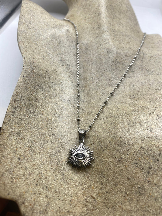 Vintage Evil Eye Choker Pendant Necklace Silver Stainless Steel