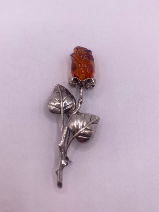 Vintage Hand Carved Golden Baltic Resin Rose Brooch Pin