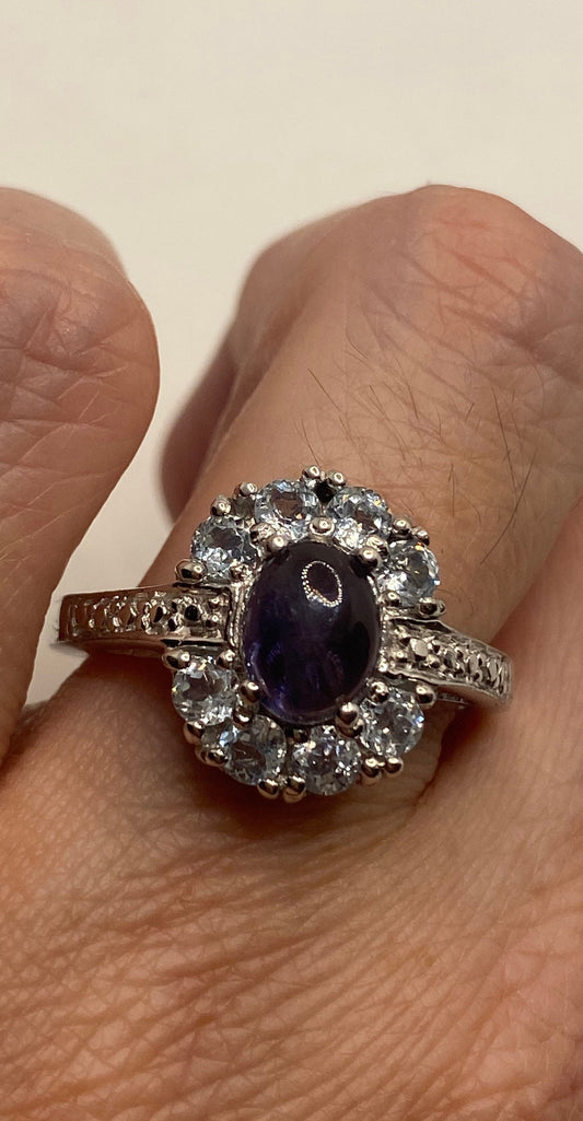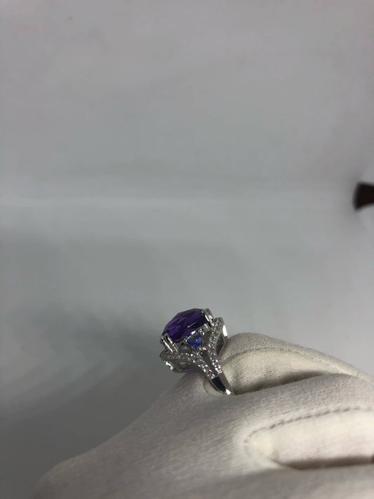 Vintage Genuine Amethyst Blue Tanzanite and white Sapphire 925 Sterling Silver ring