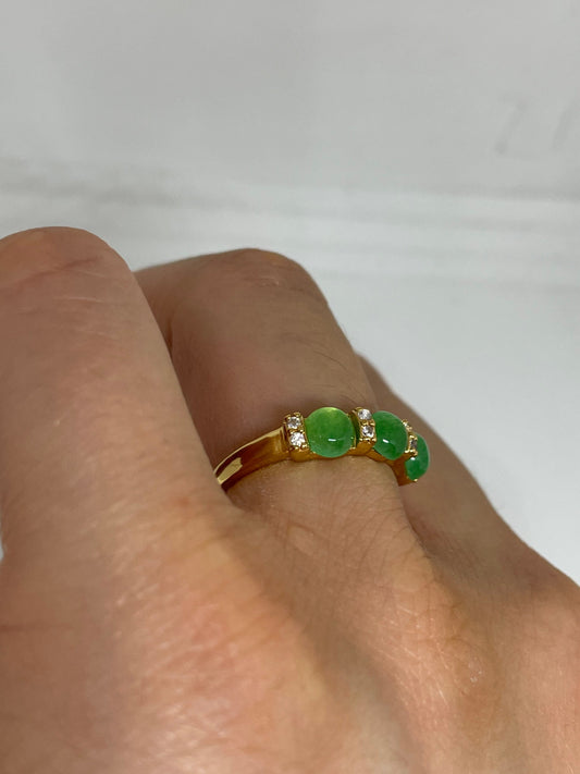 Vintage Lucky Green Nephrite Jade Golden Ring