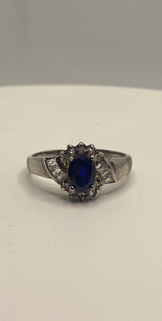 Vintage Blue Sapphire and White Sapphire 925 Sterling Silver Ring