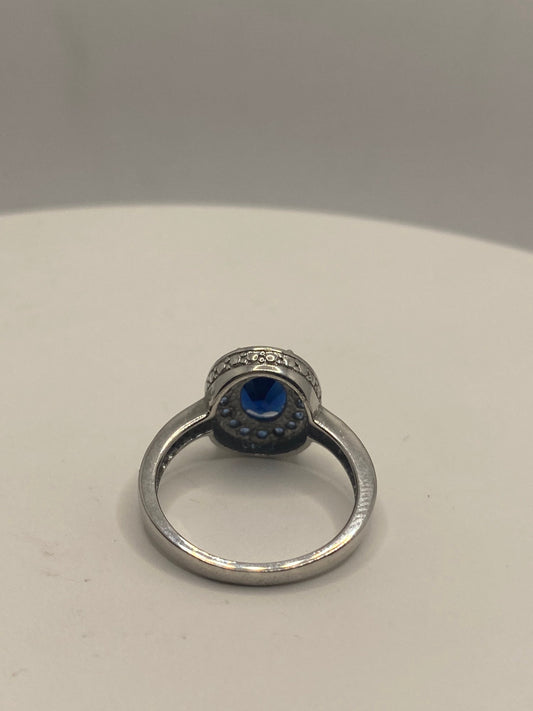 Vintage Blue Sapphire 925 Sterling Silver Ring Size 7